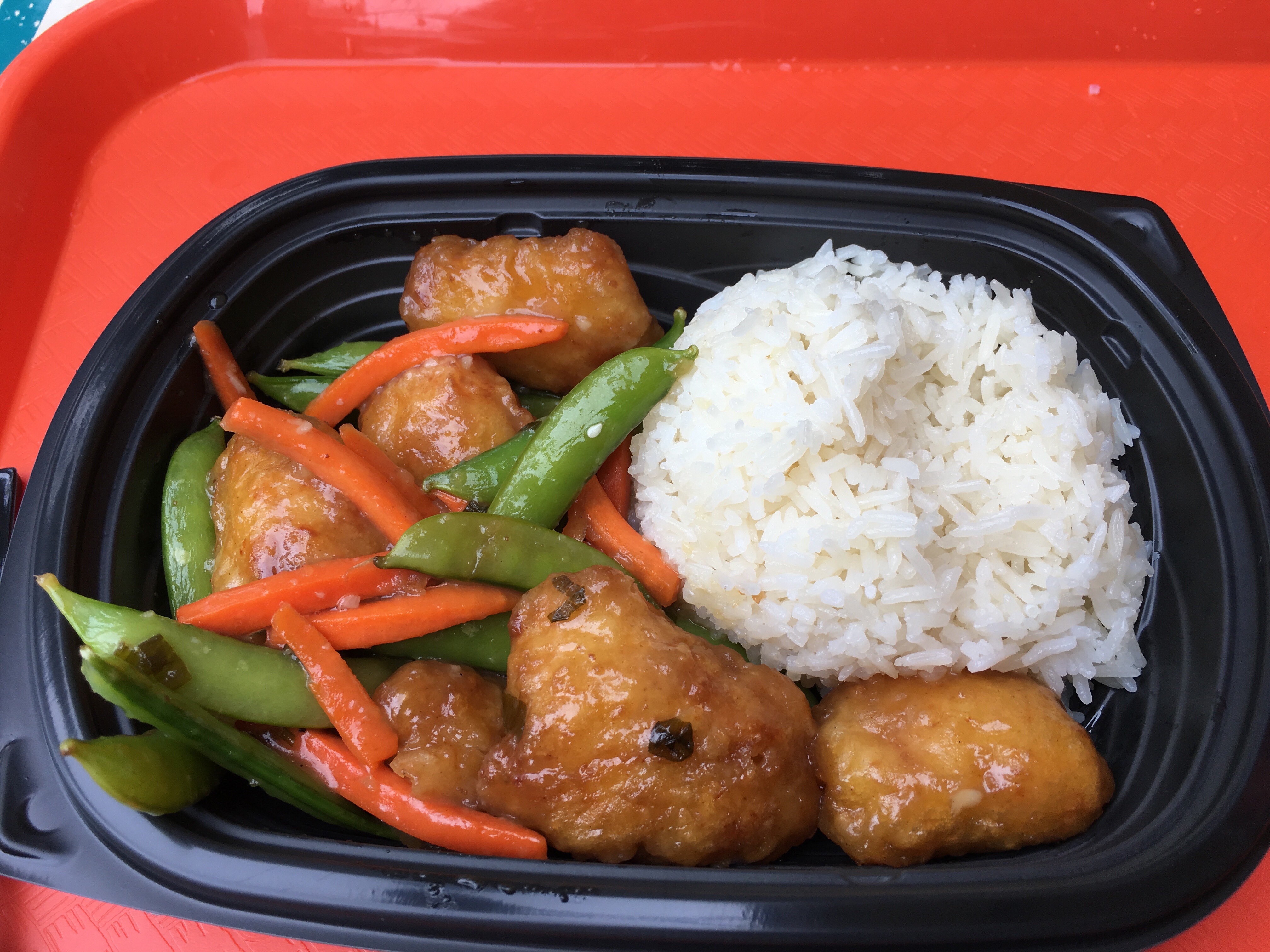 My evening meal for today was from the Yak and Yeti Cafe in Animal Kingdom. I chose the Honey Chicken with white rice, carrots and peas, it was very filling and tasty.